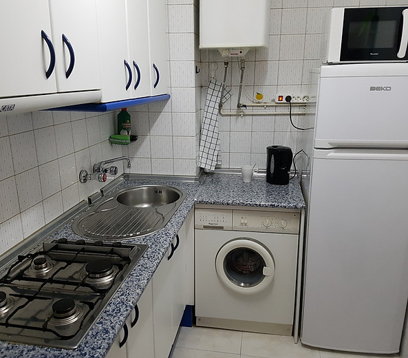 The kitchen is well equipped. Fridge/freezer, cooker, micro, toaster, washing machine and most of necessary kitchenware and crockery.
